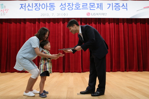LG는 19년째 저소득가정의 저신장 아이들이 키와 꿈을 키울 수 있도록 LG의 역량을 활용한 의료지원을 지속하고 있다. LG복지재단은 자녀의 키를 키워줄 길이 있음에도 불구하고, 어려운 가정형편 때문에 애를 태우는 저소득가정을 돕기 위해 ‘저신장아동 성장호르몬 지원’ 사업을 펼치고 있는 것.