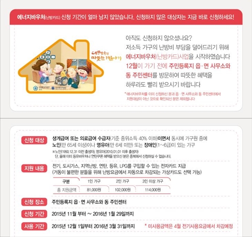 [뉴스엔뷰] 겨울철 저소득가구의 난방비를 지원하는 에너지바우처(난방카드) 사업 활성화를 위해 신청절차가 간소화된다.