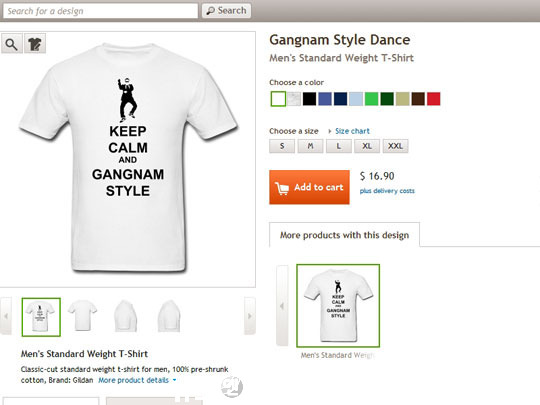 이 쇼핑몰은 버락 오바마 미국 대통령, 농구스타 마이클 조던 등 유명 인사들의 얼굴을 새긴 옷을 판매해온 것으로 알려져 미국 내에서 강남스타일의 인기가 높다는 사실을 입증했다.