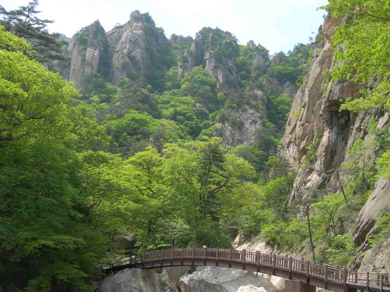 설악산은 남부지방보다 늦은 이달 중순 이후에 신록이 피어오를 것으로 전망된다. 백담사에서 수렴동까지 가는 백담계곡길은 물살이 급하지 않고 폭이 넓은 계곡을 타고 굽이굽이 흘러 멋진 풍경을 연출한다.