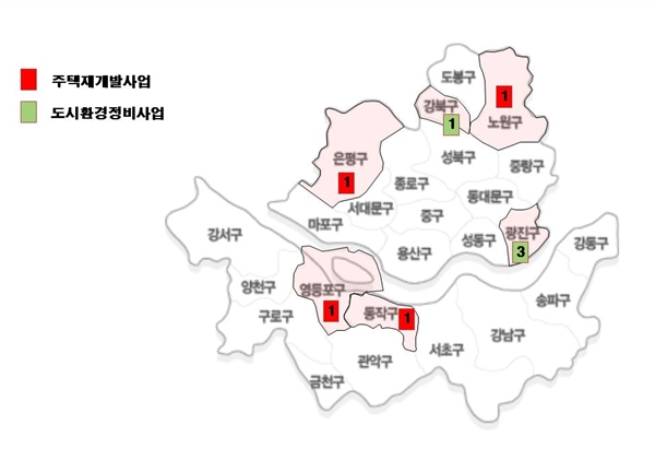 2곳은 추진위원회가 구성된 주택재건축 정비구역으로 토지 등 소유자 과반수 또는 추진위원회 구성에 동의 한 자 과반수의 요청으로 추진위가 해산돼 정비구역 등 해제 요청됐고, 서울시는 도시계획위원회 심의 통과에 따라 7월 중으로 정비구역 등 해제 고시 할 예정이다.