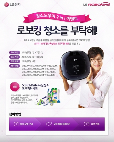 이번 이벤트는 7월 한달 간 로보킹 행사모델((VR6370VMNC, VR6370LVM, VR6371LVM, VR6372LVM, VR6360LVM, VR6378LVM, VR6379LVM, VR6373LVM, VR6374LVM, VR6375LVM, VR6276LVM, VR6377LVM)을 구입한 고객을 대상으로 진행된다.