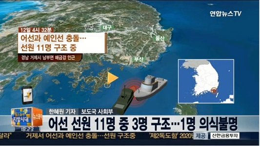 [뉴스엔뷰] 12일 오후 4시30분께 경남 거제시 남부면 갈곶도 동방 2.4㎞ 해상에서 창원선적 57t급 꽃게통발어선과 부산선적 예인선이 충돌했다.