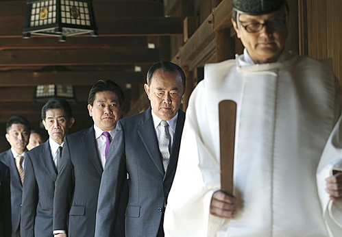 반면 신토 총무상은 "전쟁에서 목숨을 잃은 고귀한 영령에 존숭의 뜻을 담아 참배했다"면서도 신사 참배는 개인적인 것이며 국무대신 자격으로 참배한 것은 아니라고 강조했다.
