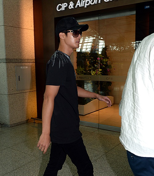 검은색 반소매 티셔츠와 검정 바지를 입은 그는 검정 운동화를 신고 검은 모자를 눌러썼다. 선글라스로 얼굴까지 가린 김현중은 미디어의 물음에 답하지 않았다.