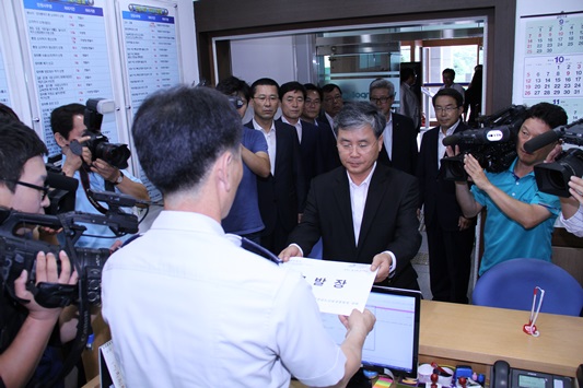 박재현 창원시 제1부시장은 시의회 본회의장에서 안상수 창원시장에게 계란을 투척한 김성일 진해지역 시의원을 피고발인으로 하는 고발장을 17일 경남경찰청 민원실에 접수했다.