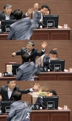 [뉴스엔뷰] 안상수 창원시장이 정례회 도중 김성일 시의원이 투척한 계란에 맞는 일이 발생했다.