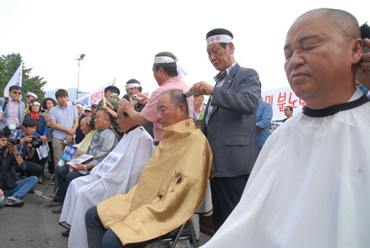 아울러 집회 과정에서 단식 농성 6일째인 김헌일 시의원과 진해구민 대표 등 5명이 삭발식을 진행하기도 했다.