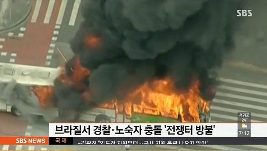 시위대와 경찰의 대치 상황이 인근 도로들과 상파울루 시립극장 앞까지 확산하면서 일부 시위자들은 버스에 불을 질렀다. 도로 한복판에서 버스 한 대가 연기를 내뿜으며 화재가 발생했다.