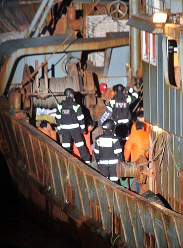해경은 불법조업으로 나포된 중국 선주 측이 담보금 2억6000만원을 납부해 현장조사를 마친 뒤 선원 17명과 어선을 우리측 영해 밖으로 퇴거 조치했다.
