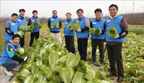이날 현대오일뱅크 임직원 30여명은 배추, 무 등 농작물을 직접 수확하며 일손을 도왔다.
