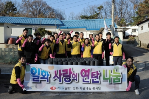 일화는 매년 사내의 ‘사랑 나눔 봉사단’을 주축으로 지역 내 형편이 어려워 따뜻한 온정의 손 길이 필요한 이웃들을 대상으로 동절기 난방용 연탄을 기부 및 배달하고, 유류·가스비 등 난방비를 지원하는 봉사활동을 진행해 오고 있다.