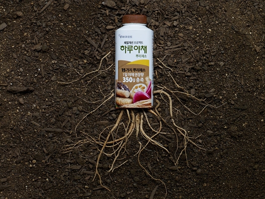 이번 신제품은 레드비트·우엉·칡·더덕·연근 등 15가지 몸에 좋은 뿌리채소를 한 병에 담았다.