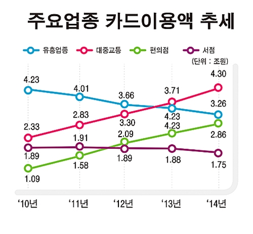 [뉴스엔뷰] 카드 소액결제가 확산되고 유흥업종에서의 카드 이용액이 점차 줄어들고 있는 것으로 나타났다.