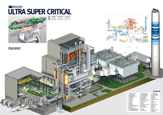 국책과제를 통해 순수 국내 기술로 개발된 1000㎿ 초초임계압 보일러는 기존 석탄화력 발전 방식보다 발전 효율이 약 3% 높고, 연간 전력생산 단가를 1기가와트(GW) 당 191억원 절약하는 효과가 있다.