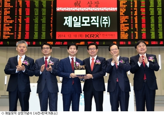 이날 상장된 제일모직은 공모가인 5만3천원의 두배인 10만6천원에 시초가가 형성된 뒤, 장중 치열한 공방 끝에 상승 마감하는 데 성공했다. 공모가 대비로는 113.20% 급등한 것이다.