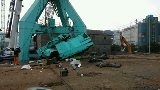 이날 사고는 40톤급 선박 건조용 크레인을 해체하던 중 철제구조물이 무너지면서 발생했다.