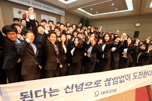 대우건설 관계자는 “기존의 강의식 교육에서 벗어나 드라마 ‘미생’ 패러디와 같은 신입사원들과 함께 소통할 수 있는 교육 프로그램을 실시했다”며 “공감하고 이해할 수 있는 교육으로 ‘완생’을 향한 첫 걸음에 앞장서겠다”고 말했다.