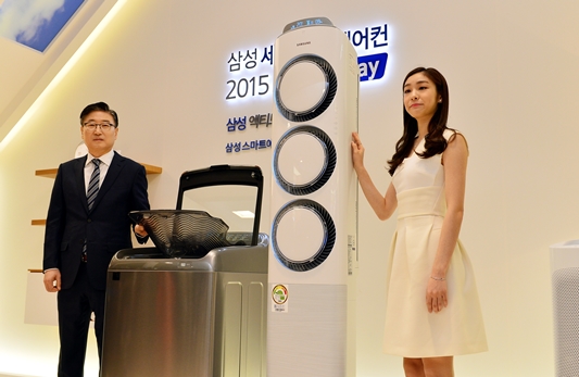 [뉴스엔뷰] 삼성전자가 3일 서울 서초동 삼성전자 서초사옥 다목적홀에서 ‘2015년형 세탁기∙에어컨 미디어데이’를 개최하고 신제품을 공개했다.