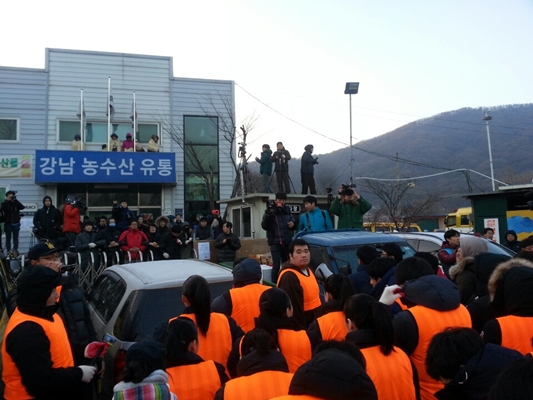 입구를 가로 막고 있던 주민들은 서로의 팔짱을 끼고 격렬히 저항했지만 용역 직원들을 막기에는 역부족이었다.