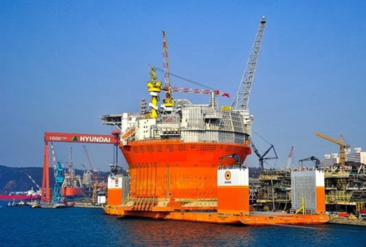 현대중공업은 지난 2010년 노르웨이 ENI 노르게 AS사로부터 수주한 것으로 지름 112m, 높이 75m, 자체중량 5만9천톤 규모의 설비를 노르웨이로 출항시켰다고 13일 밝혔다.