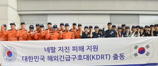 '대한민국긴급구호대(KDRT)' 소속 탐색구조요원 15명과 의료진 15명, 지원요원 2명은 이날 구조견 2마리와 함께 인천국제공항을 떠나 활동지역인 네팔 박타푸르(Bhaktapur)로 향했다.