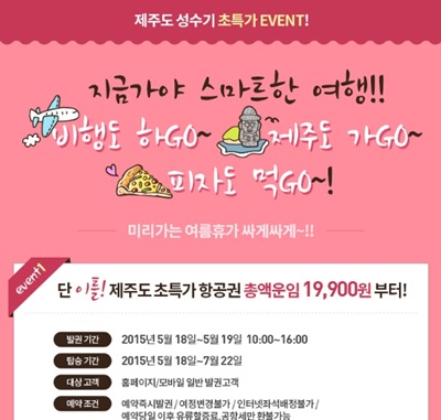 제주도 항공권 초특가 판매는 이날 오후 4시에 마감된다.