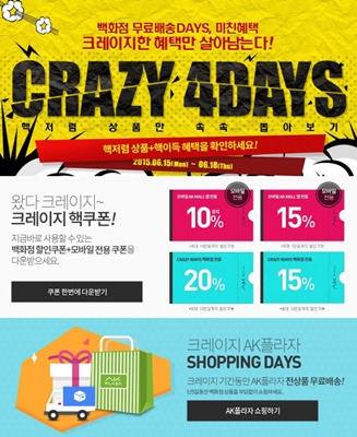 [뉴스엔뷰] 종합온라인쇼핑몰 AK몰은 15일부터 18일까지 최고 할인율 81% 할인 행사인 '핵저렴 아이템 BEST 8'을 판매 한다.