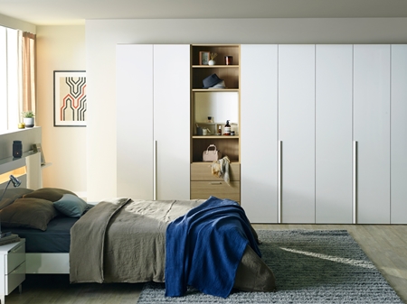 ‘더블유’ 드레스룸은 행거형 타입, 서랍형 타입뿐만 아니라 화장대 모듈 등 총 21가지 내부 모듈을 활용해 효율적인 수납은 물론, 도어를 달아 이불과 계절옷 등을 가림 수납 할 수 있다는 점이 특징이다.