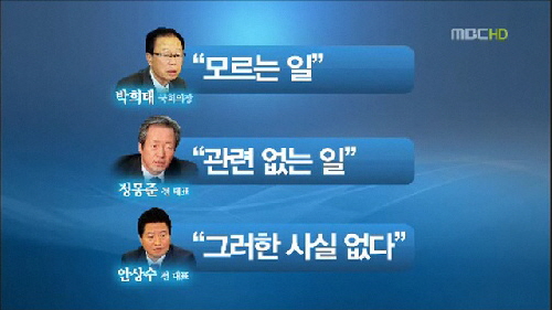 이는 18대 국회기간 중의 한나라당 당 대표는 홍준표, 정몽준, 박희태, 안상수 등 4명으로, 이 가운데 “홍준표 전 대표는 아니다”라고 밝혔으며 정몽준 전 대표는 ‘승계직’이었기 때문이다.