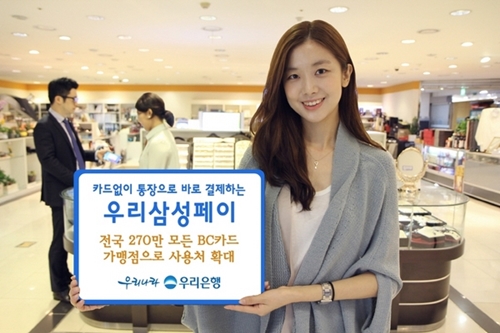 우리은행은 지난달 20일 금융권 최초로 삼성페이를 이용해 현금자동입출금기(ATM기) 출금, 은행 계좌 결제 등이 가능한 우리삼성페이를 출시한데 이어 이번 BC카드와의 제휴를 통해 BC카드의 전국 270만 가맹점으로 사용처를 확대했다. 이전까지는 결제 사용처가 일부 대형가맹점에 한정돼있었다.