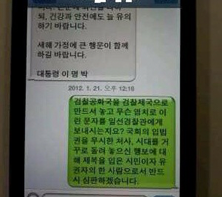 [뉴스엔뷰 동양경제] 이명박 대통령이 지난 21일 전국의 일선 경찰관들에게 설을 앞두고 보낸 격려 문자메시지에 ‘심판하겠다’는 요지의 답신을 보낸 한 경찰 간부가 결국 문책성 전보 인사 조치된 것으로 알려졌다.