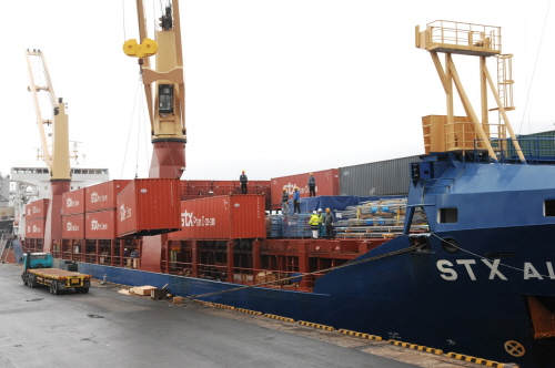 STX엔진은 30일, 지난 27일 마산항에서 디젤발전플랜트용 발전기 19대 및 플랜트 기자재를 출하했다고 밝혔다.