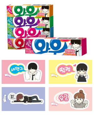 오리온은 와우를 리뉴얼하며 600만개 한정으로 연애혁명 속 인기캐릭터를 30종 판박이 스티커 껌종이로 제작했다. 최신 인기 웹툰과 추억의 판박이 껌종이 조합은 소비자들에게 새로운 재미를 제공했다.