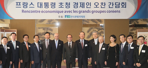 이번 간담회는 한국을 처음 방문한 올랑드 대통령이 양국 기업 간 협력에 대해 논의하고 싶다는 요청으로 이뤄졌다.