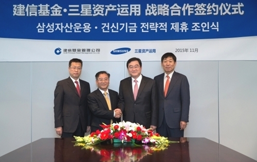 이날 중국 북경 건설은행 본사에서 열린 조인식에는 건신기금 쉬휘이빈(許會斌) 사장과 삼성자산운용 구성훈 대표가 참석했다.