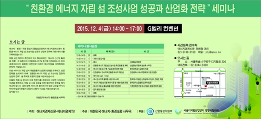 이번 세미나에서는 자립 섬의 개발현황과 산업화 방향을 모색하고 성공전략을 논의하기 위한 ‘친환경 에너지 자립 섬 조성사업 전망과 산업화 전략’을 주제로 다각적인 토론이 진행될 예정이다.
