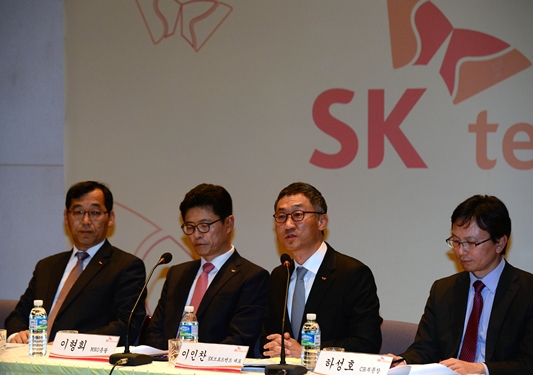 SK텔레콤 이형희 MNO 총괄이 2일 오후 서울 중구 을지로 SK텔레콤 본사 사옥에서 CJ헬로비전 인수 및 SK브로드밴드와의 합병을 통한 기대 효과 및 청사진을 발표했다.
