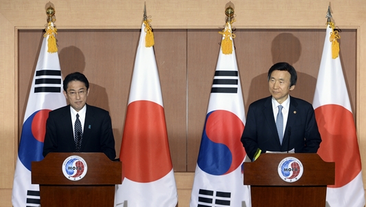 윤병세 외교부장관과 기시다 후미오(岸田文雄) 일본 외무상은 이날 오후 서울 외교부 청사에서 1시간 20여분가량 외교장관회담을 가진 후 공동기자회견을 열어 이 같은 내용의 합의안을 발표했다.