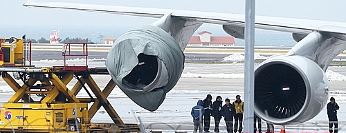 대한항공 관계자는 "해당 여객기의 조종사는 제주공항에 착륙한 후 오른쪽 엔진 덮개가 찌그러진 사실을 발견했다고 말했다"며 "덮개가 착륙 중 파손됐는지 등 정확한 사고원인을 조사하고 있다"고 말했다.