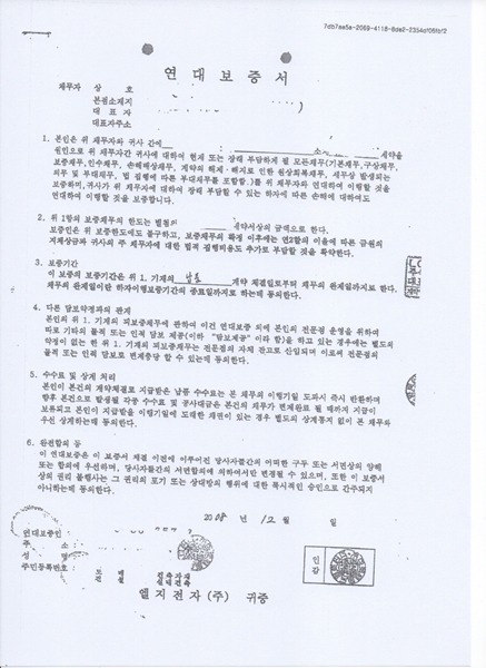 LG전자는 2008년 6월부터 2013년 12월 20일까지 자사 빌트인 가전제품 영업전문점에 총 441건1,302억 900만원의 빌트인 가전제품 납품 계약을 체결하고 그 대금의 20%내지 100%에 해당하는 금액에 대하여 연대보증을 할 것을 요구했다.