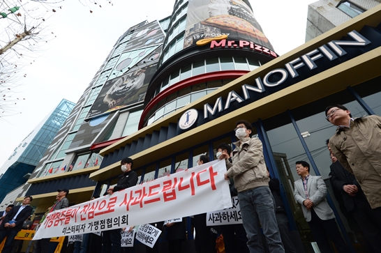 한편 지난 3월 미스터피자 가맹점주들은 대규모 집회를 열었다.