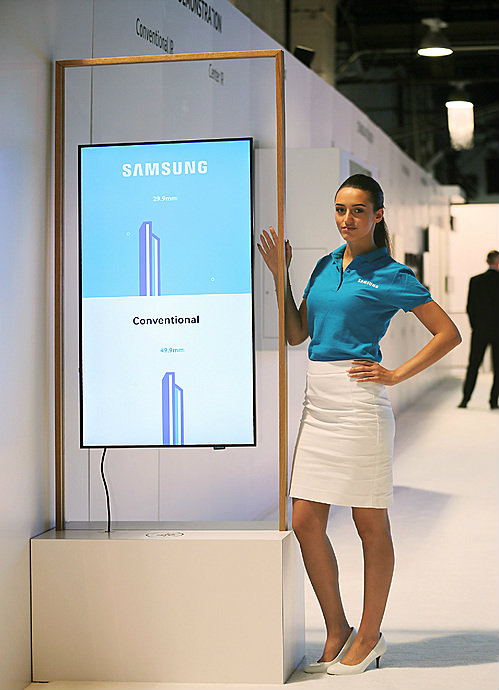 삼성전자는 두께 29.9mm의 초슬림 스마트 사이니지 2개 제품군과 실외에서 사용하는 아웃도어용 스마트 사이니지에 자사 OS인 타이젠을 탑재했다.