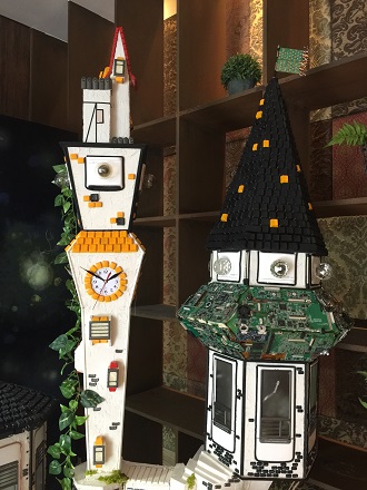 결제단말기를 분해한 키보드는 지붕의 기왓장이, 액정패널은 유리창이, 버튼들은 성벽의 벽돌이 돼 하나의 마을을 이룬 모습이 신기하기도 하고, 버려진 것들이 새롭게 태어났다는 것이 희망적이기도 하다.
