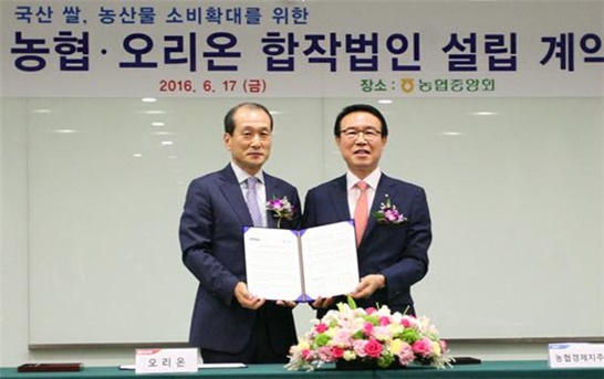 오리온은 17일 허인철 오리온 부회장과 이상욱 농협경제지주 대표이사는 이날 서울 농협중앙회 본관에서 합작투자계약을 체결했다.