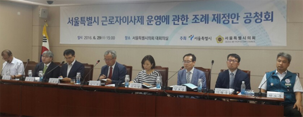29일 오후3시 서울시의회 의원회관 2층 대회의실에서 열린 ‘서울특별시 근로자이사제 운영에 관한 조례(안) 제정 공청회’에는 노사정, 시의원, 교수 등 대표들이 토론자로 참석했다. 먼저 김용남 서울시 재정기획관이 근로자이사제 도입 방안과 조례(안)을 설명했다.