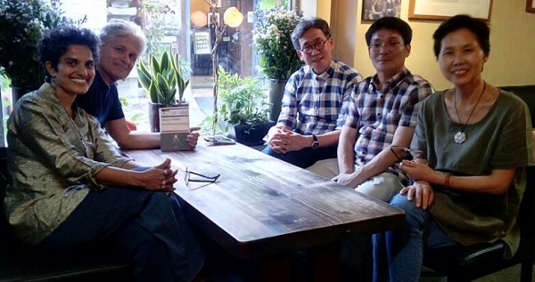 이들 부부는 지난 6월 19일 입국해 오는 7월 15일 인도 오로빌 공동체로 떠난다. 이날 통역은 인도 오로빌 공동체 만다라 작가로 알려진 김성애(사라시자) 화가가 맡았다.