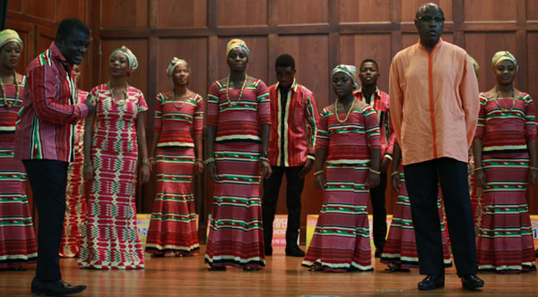 합창단은 이날 오프닝 곳으로 우리나라 애국가를 한국어로 노래했고, 이어 가나 국가도 불러 관객들은 우레와 같은 함성과 박수 소리로 화답했다. 특히 우리 대중가요 노사연의 만남과 김종환의 소원 그리고 아리랑, 고향의 봄 등 민요도 우리말로 불렀다. 미국 대중가수 밥 딜런의 노래 This land, is your land(이 땅이 너희 땅) 등 15곡 이어졌다.