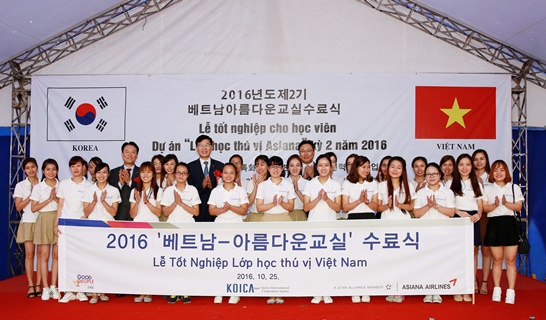 '베트남-아름다운 교실'은 아시아나항공이 베트남 저소득층 여성들의 사회 진출을 돕기 위해 한국국제협력단(KOICA) 및 비영리단체 굿피플과 함께 운영하는 취업 지원 교육 프로그램이다.