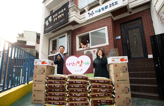 이날 기증한 쌀은 금호건설 임직원으로 구성된 ‘어울림 자원봉사단’이 직접 재배한 쌀이다.